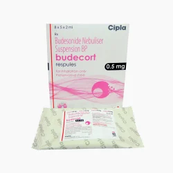 Budecort 0.5 mg Respules (by Cipla Ltd) are a liquid, prescription-only formulation of Budesonide (0.5 mg/2 mL), a corticosteroid used for maintenance treatment of asthma, COPD, and airway inflammation. It is administered via a nebulizer to reduce inflammation in the airways.